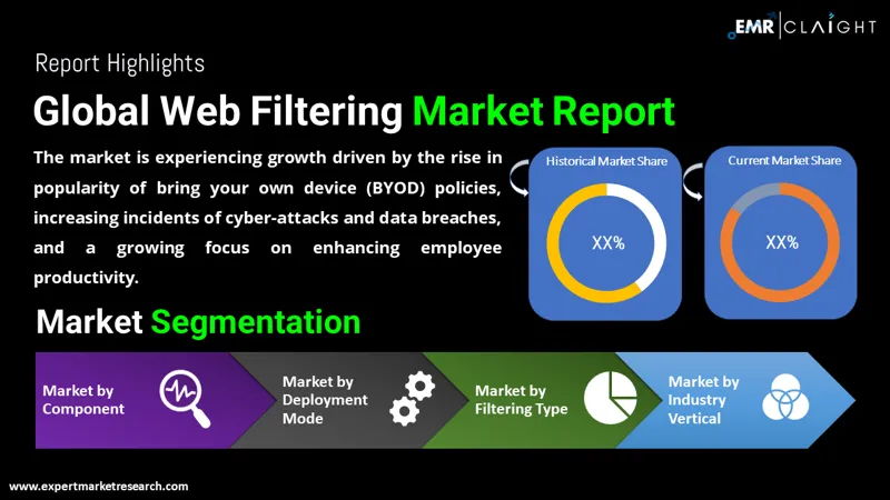 The increasing implementation of bring your device (BYOD) policies by various organisations is one of the key web filtering market trends. The rising utilisation of personal devices such as laptops and mobiles for work purposes is leading to a rise in network security threats, thus contributing to the demand for the web filtering market.
