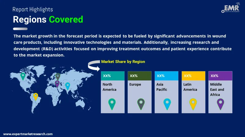 North America holds the largest share driven by the high prevalence of chronic wounds, increasing healthcare spending, and advanced treatment options. The presence of key market players, well-established healthcare infrastructure, and a strong reimbursement framework further support market expansion.