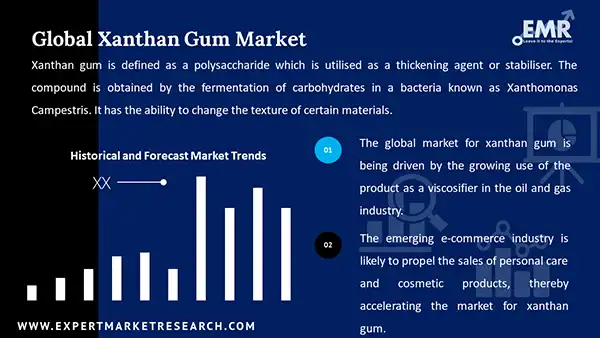 The major drivers of the market include the rising application of xanthan gum in various industries including oil and gas, and pharmaceutical, among others, increasing application of xanthan gum in condiments, and as a thickening agent in the food industry, increasing sales of cosmetics, and rapid urbanisation.