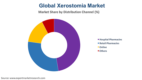 The xerostomia treatment market can be broadly categorised based on its distribution channels into hospital pharmacies, retail pharmacies, and online, among others.