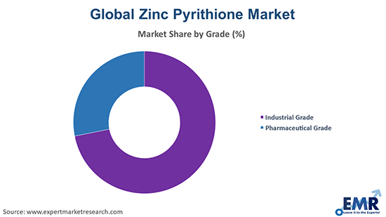 The leading grades of zinc pyrithione in the market are industrial grade and pharmaceutical grade.